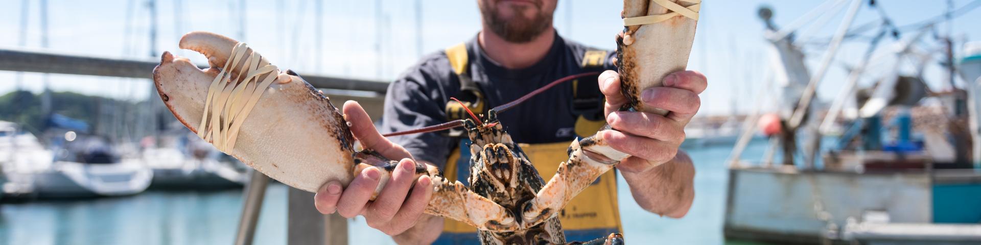Lobsters live among the rocks at the bottom of the sea, sometimes quite close to the coast. They are caught using lobster pots. Some brave souls catch them by beach fishing using a gaff, hook or harpoon, when there’s a particularly high tide and lobsters hide in crevices.